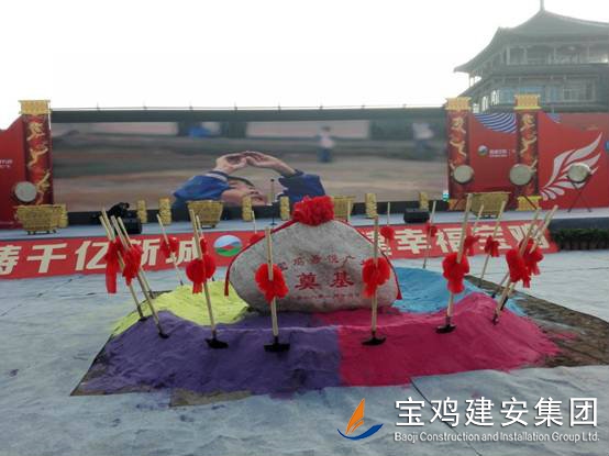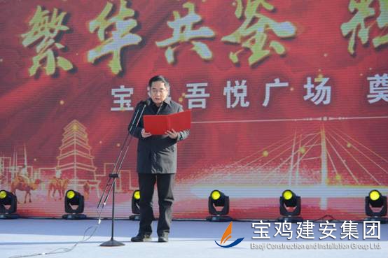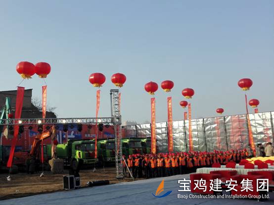 2018年1月16日上午,寶雞新城吾悅廣場項目奠基儀式在高新區舉行,該項目是繼恒大、碧桂園之后,寶雞高新區引進的又一個千億級商業航母——新城控股集團在西北地區建設的第二個一站式綜合廣場。奠基儀式上,公司董事長景常榮代表施工單位致辭,新城控股集團副總裁陸建華代表建設單位致辭,高新區黨工委書記、管委會主任郝晉升代表政府單位致辭。高新區管委會領導、新城控股集團領導、寶雞建安集團董事長、寶雞市中小企業協會領導等為項目培土奠基。公司組織管理人員、施工人員共計300人參加了奠基儀式。
