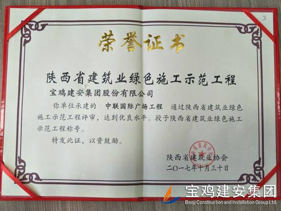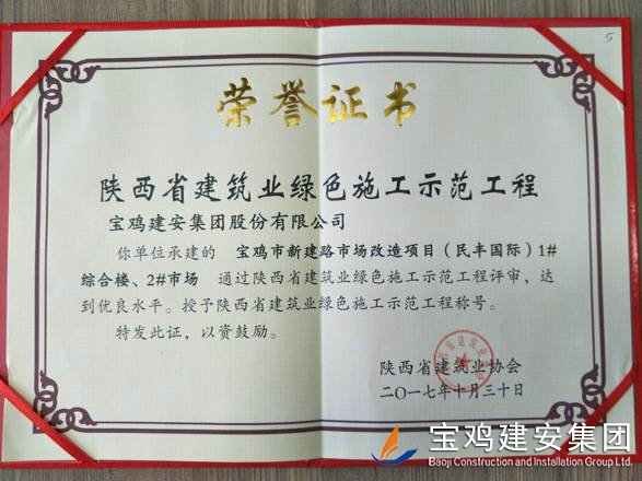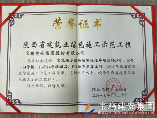 2018年1月26日在西安召開了陜西省建筑業協會第六屆二次理事會議,我公司承建的科研生產試驗大樓、寶雞蟠龍新居SF05標段,高新五路明星佳苑、新建路市場改造項目(民豐國際)、中聯國際廣場項目,在2017年度綠色施工評審過程中,達到優良水平,被授予陜西省建筑業綠色施工示范工程稱號。 此次榮譽的獲得離不開公司各職能部室的指導與項目部的辛勤努力,項目部能緊跟建筑行業發展的大方向,不斷加強綠色施工過程管理的學習,在施工過程中圍繞著“四節一環保”理念,堅持走節能降耗,增效降本,可持續發展的施工道路,最終取得了可喜的成績。 公司綠色施工整體水平近年來得到顯著提高,希望各項目部在2018年的施工過程中,以文明施工,綠色施工標準嚴格要求自己,力爭在施工管理方面取得更高的成績。