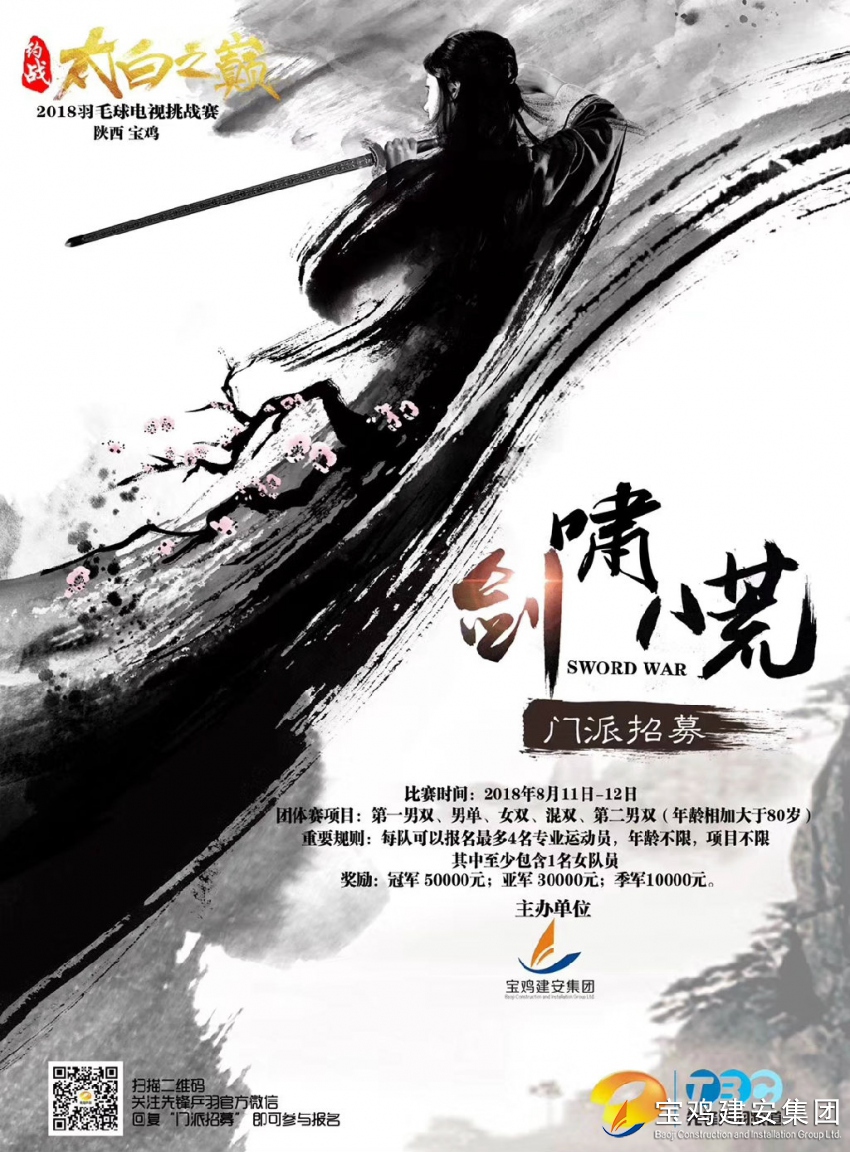 凡有井水處皆聞江湖聲古有華山論劍今有約戰太白2018羽林風起云涌各路豪杰逐鹿中原值此日新月異之際先鋒乒羽發出江湖招募令:誠邀江湖各大門派羽林豪杰金秋八月齊聚雍城共襄羽林盛舉! 太白之顛 羽林盟主之位等你來戰!