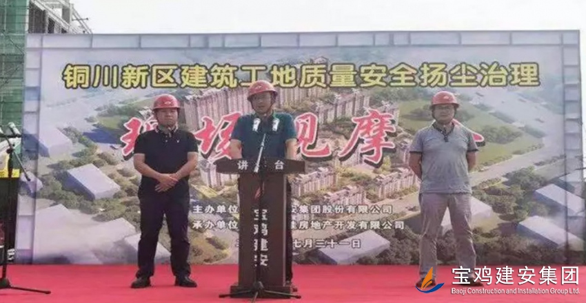 歷兵秣馬,十年磨劍,弘揚(yáng)工匠精神,展我建安雄姿。2019年7月31日,寶雞建安集團(tuán)第四項(xiàng)目部迎來了意義非凡的一天,“銅川市安全文明施工暨揚(yáng)塵治理現(xiàn)場觀摩會(huì)”在我司銅川新區(qū)雍照華庭項(xiàng)目隆重召開。
