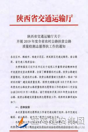 今年8月底,陜西省交通廳下發(fā)《關(guān)于開(kāi)展2019年度全省農(nóng)村公路扶貧公路質(zhì)量檢測(cè)志愿幫扶工作的通知》,通知轄區(qū)內(nèi)試驗(yàn)檢測(cè)機(jī)構(gòu)自愿報(bào)名參加扶貧公路義務(wù)檢測(cè)活動(dòng),對(duì)自愿報(bào)名并且通過(guò)資格能力審核的檢測(cè)單位隨機(jī)抽取各市的待檢縣,實(shí)施幫扶檢測(cè)活動(dòng),并要求于10月中旬完成檢測(cè)數(shù)據(jù)匯總表和分析報(bào)告上報(bào)工作。
