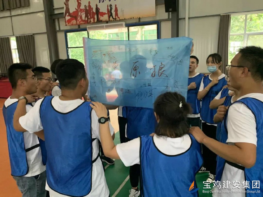 在訓練場上,我們忘記了年齡,忘記了工作的身份,忘記了生活的環境,我們拋開一切,全身心地投入到訓練當中。我們的團隊有著一個霸氣而響亮的名字“草原狼”戰隊,在李前飛隊長的帶領下,我們一同喊出我們藍隊口號“齊心協力,共創奇跡”,然后就開始了兩天極具挑戰的訓練。整個過程包括了好幾大項目:高空斷橋、電網逃生、盲人屋子方陣、攀登“畢業墻”等等。每每遇到困難和挑戰,我們以勇敢、果斷的精神品質去迎接每個項目的挑戰,不管后面的項目到底結果怎樣,我們都是一種榮辱與共的精神品質,最終都是沒有相互抱怨,沒有放棄和拋棄。最終,我們草原狼戰隊的每一名成員都順利通過了重重考驗。