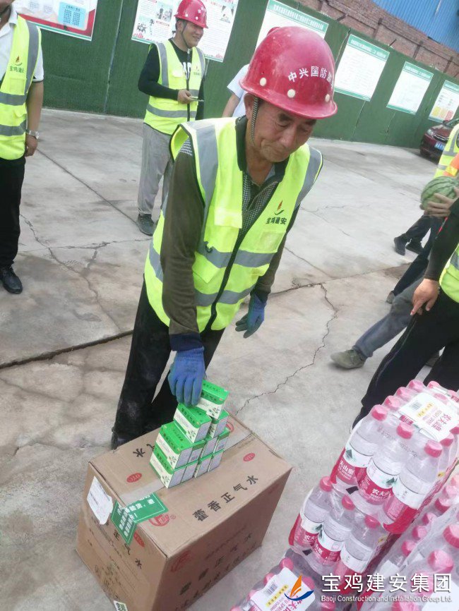 活動(dòng)現(xiàn)場,高新區(qū)管委會(huì)領(lǐng)導(dǎo)親自將西瓜、飲料、純凈水、藿香正氣水等多種防暑降溫用品送到了現(xiàn)場的廣大員工手中,向大家三伏天堅(jiān)守在一線崗位表示感謝和問候。