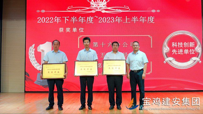 為激勵先進、樹立榜樣,會議第二項由質(zhì)量部經(jīng)理韓宇龍宣讀了《關(guān)于表彰2022下半年至2023上半年科技成果獎勵、科技創(chuàng)新先進單位、BIM推廣應用先進單位的決定》并主持頒獎。2022下半年~2023上半年度共獲得省級QC一類成果3項,省級QC二類成果5項,省級QC三類成果4項,實用新型專利17項,各類BIM獎項7項,并授予第十六分公司、第十五項目經(jīng)理部、第四分公司為科技創(chuàng)新先進單位榮譽,授予西安分公司為BIM推廣應用先進單位榮譽??偨?jīng)理胥永寧及公司相關(guān)領(lǐng)導為獲獎單位頒發(fā)了獎勵。