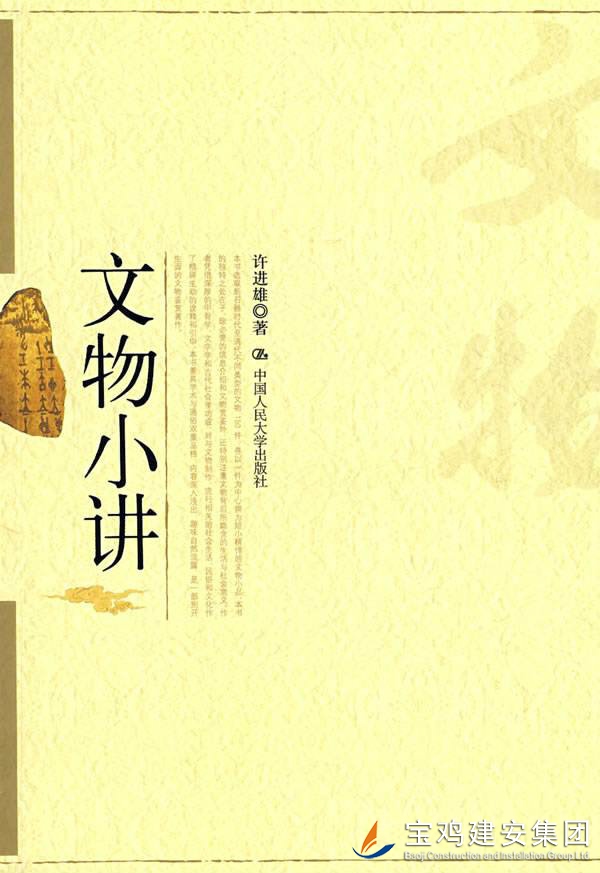 公司開展“書香企業”讀書月活動,提供了大量優秀的各類書籍供員工閱讀,我有緣拜讀到一本臺灣著名學者許進雄先生的作品《文物小講》。 這本書以通俗易懂而不失學術的小品文方式,介紹了150件中國文物。文物歷史橫跨新石器時代至清代,文體精悍短小,詮釋精辟生動,讓人閱讀時仿佛置身博物館中游覽,不知不覺引人入勝。