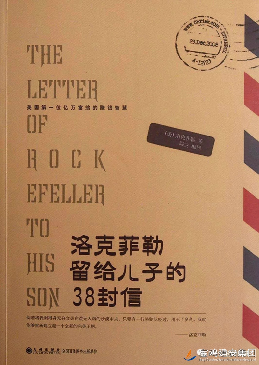 我們所從事的建筑業也同樣充滿競爭,因為現場大部分從業者的年齡都是90后,所以富有激情和活力,也因為工作特殊性,常年離家在外,需要獨立面對生活。建筑行業里的老人總是會對新人說一句:工地是個很鍛煉人的地方。的確,90后生活條件好,到了工地這種面對文化程度層次不齊的人群,工作場所復雜的環境一時間很難接受。想起以前第一次離家出去上大學時,父母把我送到學校,我全程只顧著玩手機,進校報道和領東西都是父母給辦好,連宿舍里的床都是父母給鋪好的。后來畢業應聘到工地來上班,因為正值8月份大商業基坑挖掘階段,每天灰頭土臉的,大家都被太陽曬的脖子蛻皮。當時上午來的,下午就想回家。所幸得到了公司很多前輩的開導,當時下班后領導單獨開導我說:“工地苦是苦,累是累,但你學到的,經歷到的也會比別人多很多。”我想,用心去聽別人對自己的建議和指導也是一種能力吧。正是因為有了這樣的團隊,這樣的同事和朋友才讓我繼續堅持。洛克菲勒自傳中有這樣一段話:老一代的故事可能對年輕一代沒什么吸引力,但它不是一點用都沒有,盡管故事有些乏味,卻可以讓年輕人認識到,在生命的每個階段,朋友的價值遠超過其它財富的價值,沒有人能例外。 雖然在這里不能詳細介紹這些書信的內容,但我想希望總是寄托在年輕一代的身上,未來是屬于年輕人的。就用諸葛亮的《誡子書》作為結尾與大家共勉:“淫慢則不能勵精,險躁則不能冶性。年與時馳,意與日去,遂成枯落,多不接世,悲守窮廬,將復何及!”