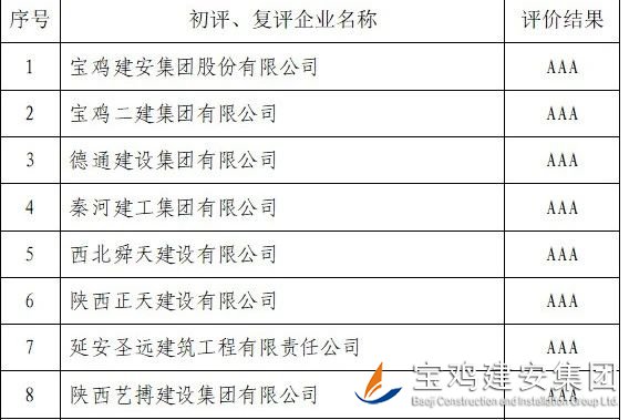 據(jù)悉,2022年度,參評企業(yè)范圍涵蓋了全省9個地市,涉及房建、市政、交通、鐵路等多個行業(yè)(專業(yè)),分布更加均衡,尤其是今年申報信用評價的企業(yè)數(shù)量創(chuàng)歷年來新高,企業(yè)參與度更加積極,競爭更加強(qiáng)烈。寶雞建安集團(tuán)股份有限公司再次獲得殊榮,首先來自于集團(tuán)領(lǐng)導(dǎo)的高度重視和指導(dǎo),其次與各部室通力協(xié)作密不可分,大家齊心協(xié)力,同心同德,不計得失,甘于奉獻(xiàn),充分展示了并肩協(xié)作的工作作風(fēng)。陜西省建筑施工企業(yè)信用AAA級榮譽(yù)的獲得,必將進(jìn)一步激發(fā)廣大員工追求卓越、勇攀高峰的拼搏精神,不斷為企業(yè)更快更好發(fā)展奉獻(xiàn)自身的智慧和力量!