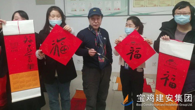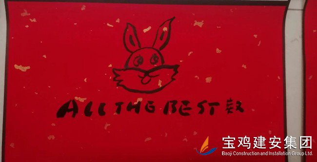 “虎嘯傳捷報,玉兔迎春暉”,在癸卯新春即將到來之際,公司工會特邀我市著名書畫家、篆刻家、寶雞印社名譽社長、寶雞市直機關書畫協會副會長兼秘書長張寶文老師蒞臨建安大廈,為廣大員工精心繪制生肖畫、書寫新春聯,將春節的喜慶與祥和及時送到了廣大員工的身邊...... “虎嘯傳捷報,玉兔迎春暉”,在癸卯新春即將到來之際,公司工會特邀我市著名書畫家、篆刻家、寶雞印社名譽社長、寶雞市直機關書畫協會副會長兼秘書長張寶文老師蒞臨建安大廈,為廣大員工精心繪制生肖畫、書寫新春聯,將春節的喜慶與祥和及時送到了廣大員工的身邊...... “萌萌噠”的玉兔挑著燈籠歡笑著,蹦跳著,燈籠上系著鞭炮、掛著糖葫蘆、閃著福星,飄逸灑脫的福字和“諸事和順、兔年幸福”的吉祥語與英語文“Happy new year”“Best wishes”中西合璧、巧妙結合,將辭舊迎新的節慶氣氛濃縮在一張張中國紅的斗方宣紙與節日掛歷上,濃濃的年味撲面而來,帶給大家無盡的喜悅與祝福……